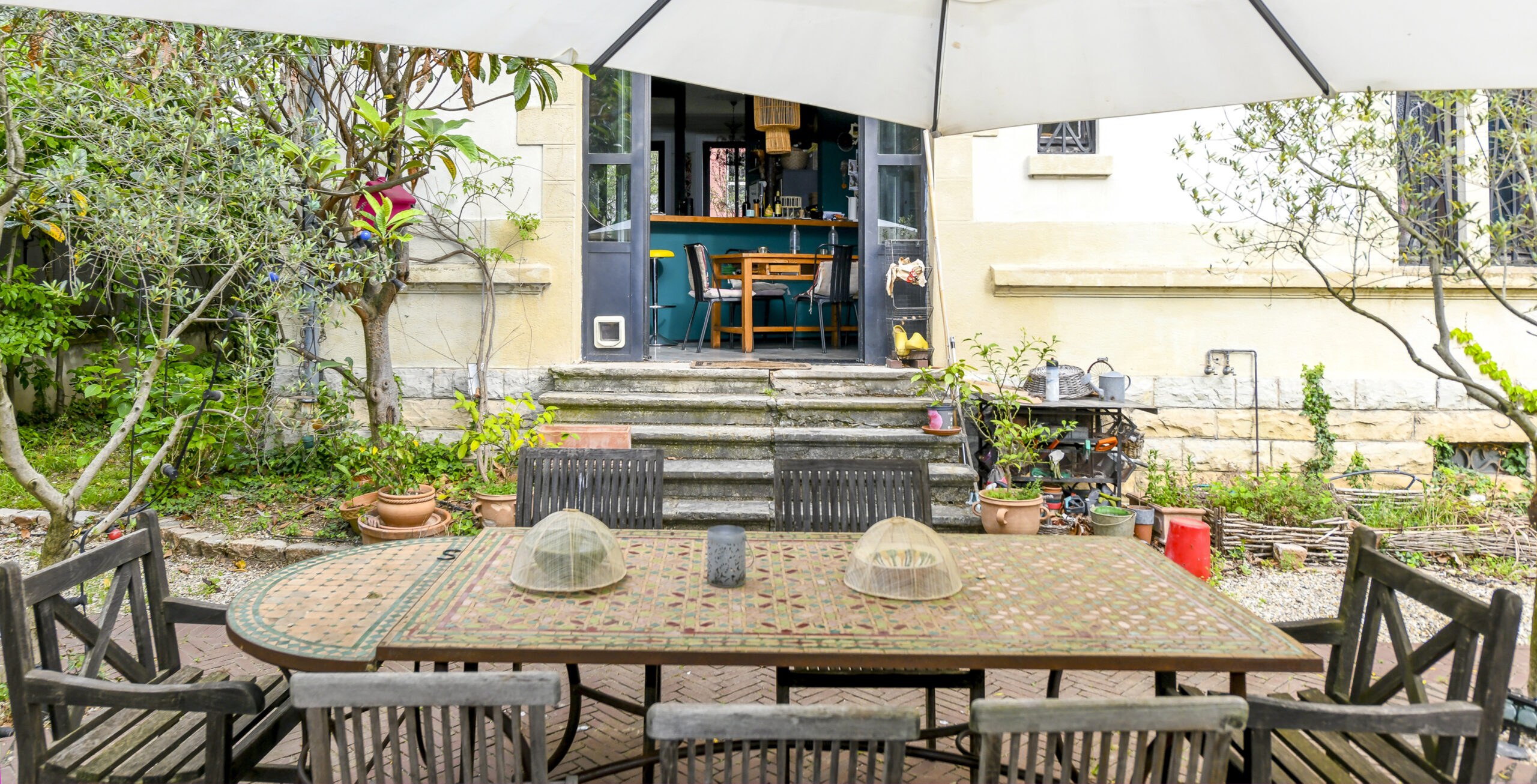 Le jardin constitue une véritable respiration en cœur de ville, avec terrasse, piscine chauffée, atelier indépendant de 19 m² et stationnement pour plusieurs véhicules.