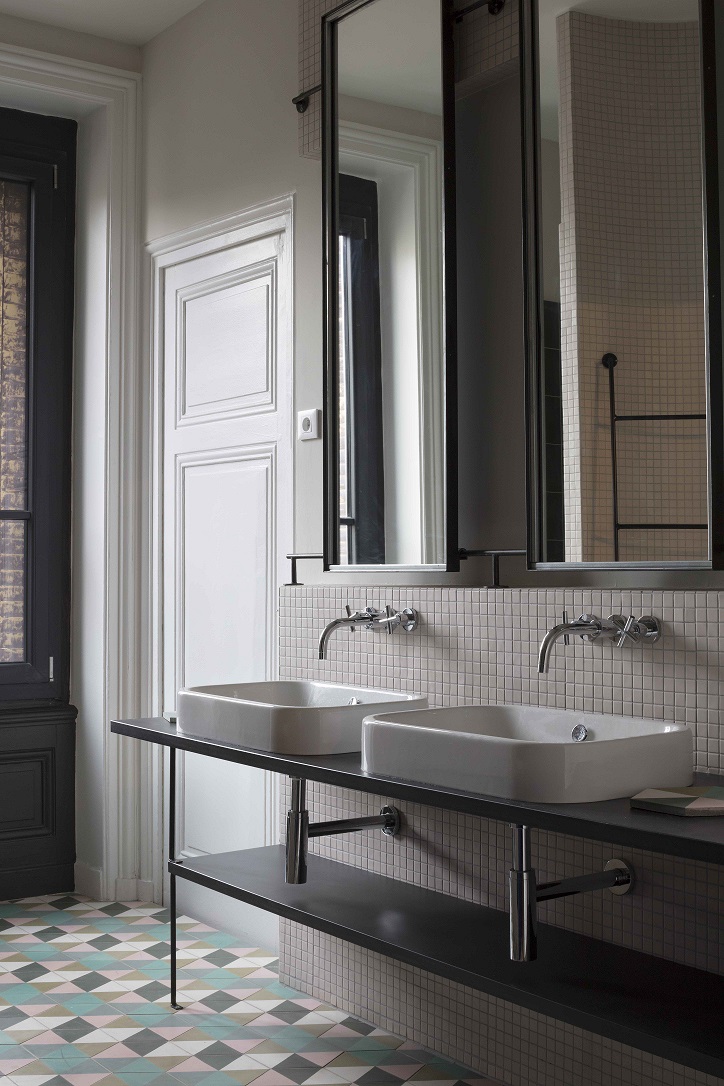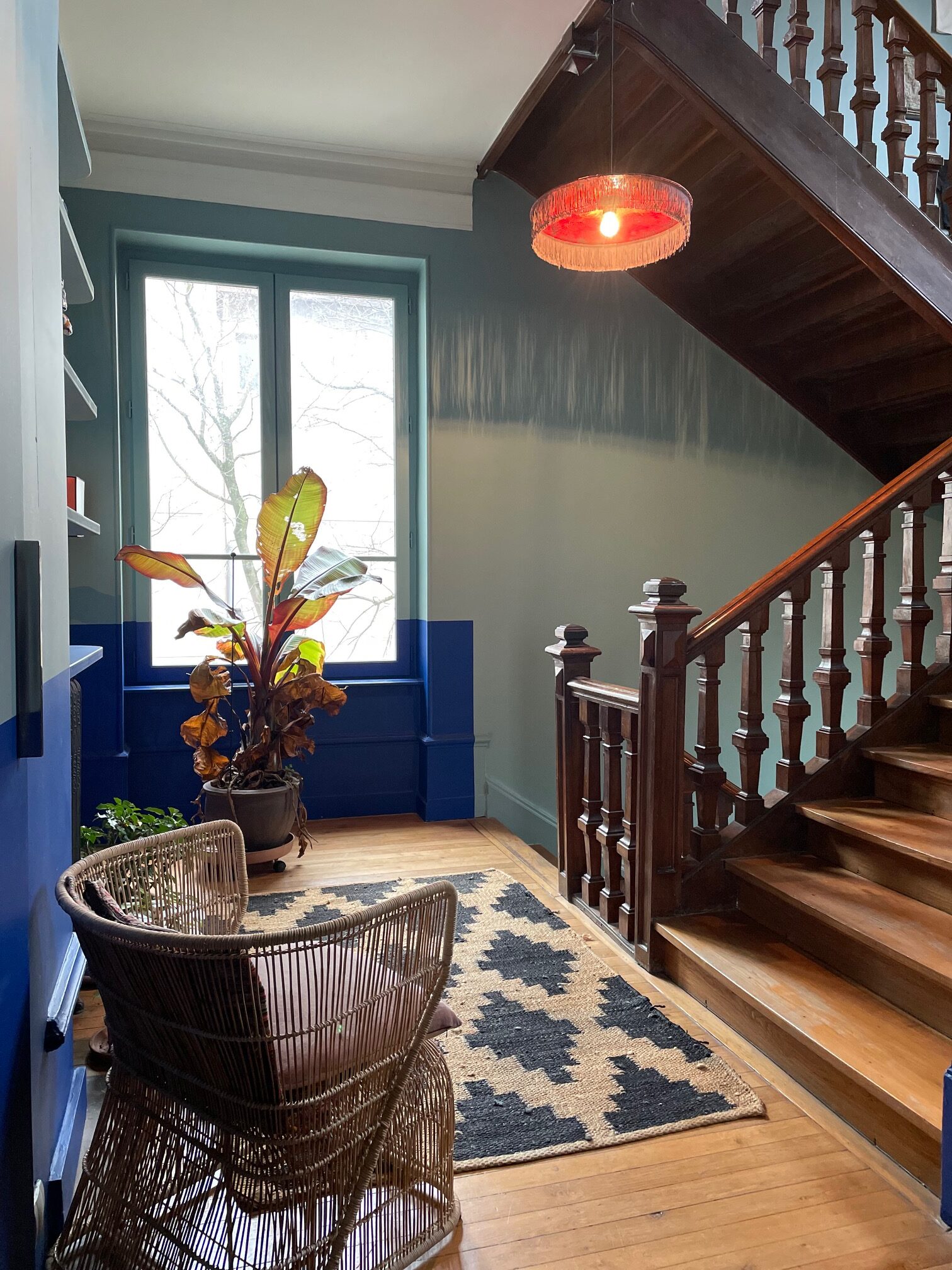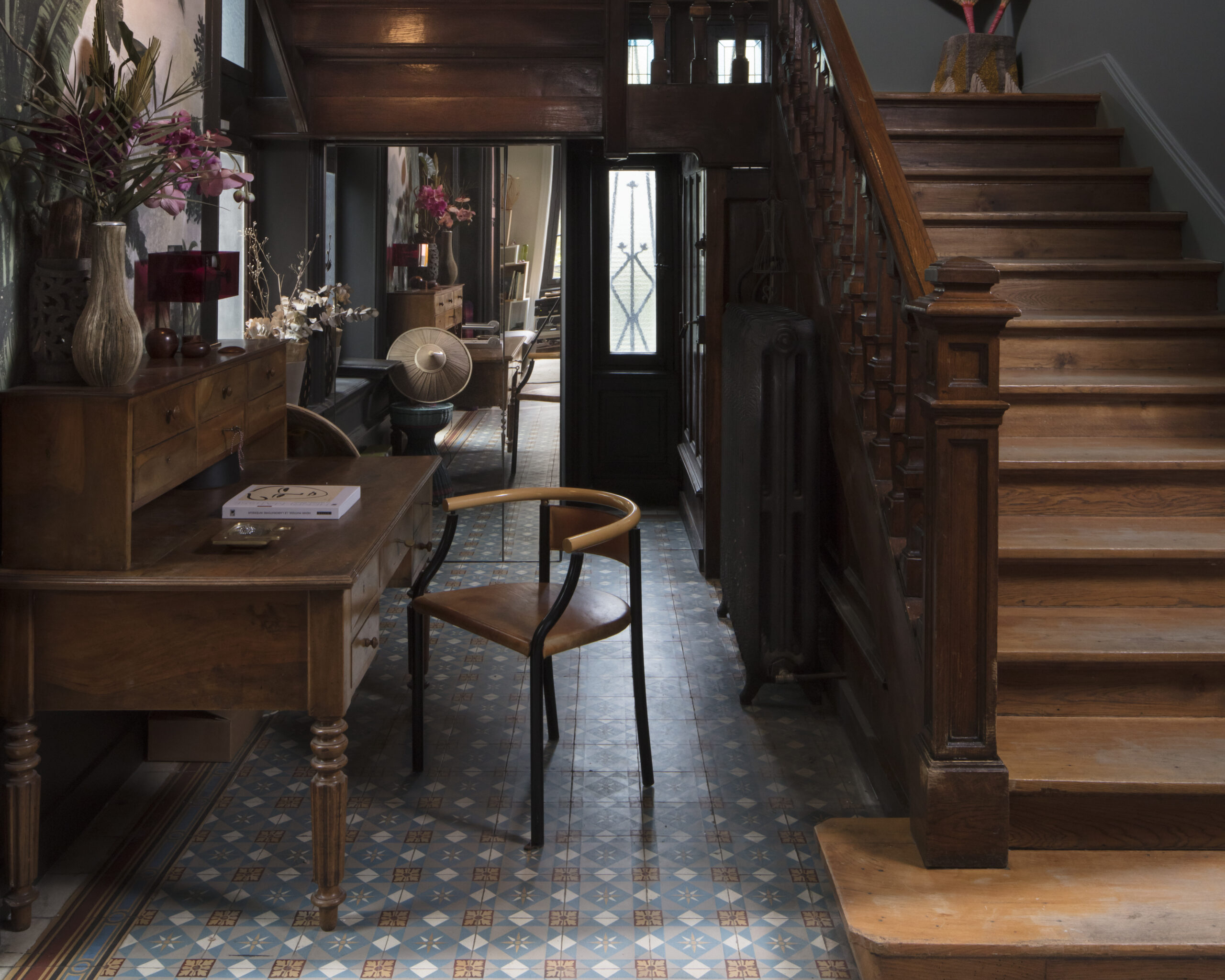 Rénovée en 2017, elle bénéficie d’une mise en valeur soignée de ses éléments d’origine : cheminées en marbre, parquets à bâtons rompus, carreaux de ciment, radiateurs en fonte et vitraux signés.